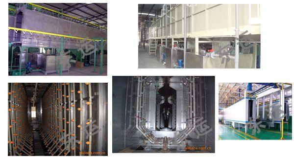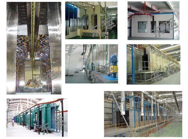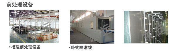 前处理设备是喷淋式联合清洗机,其清洗原理是借助于喷射机械力和化学作用,来完成去油、磷化、钝化、清洗等工艺过程。涂装前处理的工艺流程很多,可根据具体情况,如厂房条件即空间位置大小、工件材质(冷轧板、热轧板、镀锌板、铝合金、玻璃钢等)、工件表面状况(锈蚀、防锈油、杂物)、生产批量、质量要求等选择。不同的生产厂家采用的流程不尽相同。