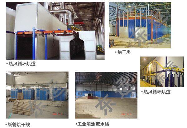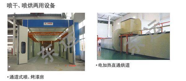 由于大型机车涂装的特殊性,机车进行涂装时不宜采用流水先式的涂装线,采用具有喷干、喷烘两用设备两种功能的喷烘漆室,不仅具有喷漆房功能,还具有烘干功能。在喷漆时送排风机组同时工作,气流在送风机组的作用下经过过滤进入喷漆室,然后在排风风组的作用下经过过滤进入喷漆室,然后在排风风机组的作用下经过处理排放到大气中;在烘干时一般利用送风机组作为循环机组,通过循环加热提供室内温度,实现烘干工件的目的。